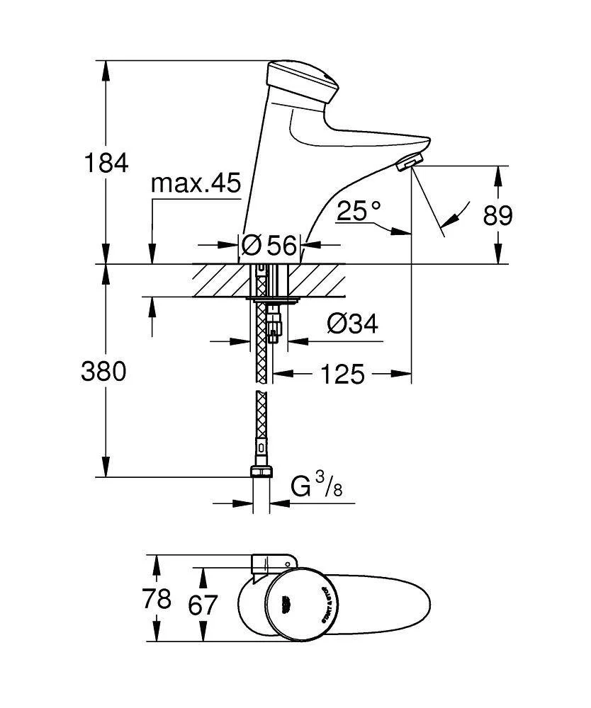 - Автоматическое безопасное отключение воды после 180 сек. непрерывного пользования (заводская настройка)