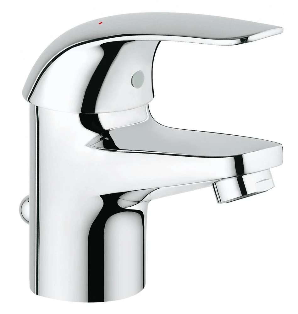 Euroeco Смеситель однорычажный для раковины DN 15 S-Size монтаж на одно отверстие металлический рычаг GROHE SilkMove® керамический картридж 35 мм GROHE StarLight® хромированная поверхность ограничитель потока 9 л/мин. система быстрого монтажа аэратор сливной гарнитур 1 1/4" гибкая подводка дополнительный ограничитель температуры (46 375 000) класс шума I по DIN 4109