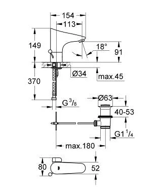 - Монтаж на одно отверстие