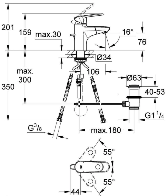 Смеситель для раковины GROHE Europlus с донным клапаном и выдвижным изливом, хром (33155002)