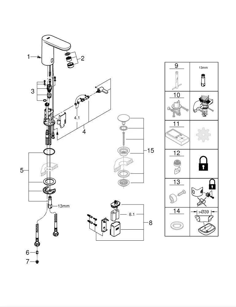 - смешивающее устройство со стопором горячей воды