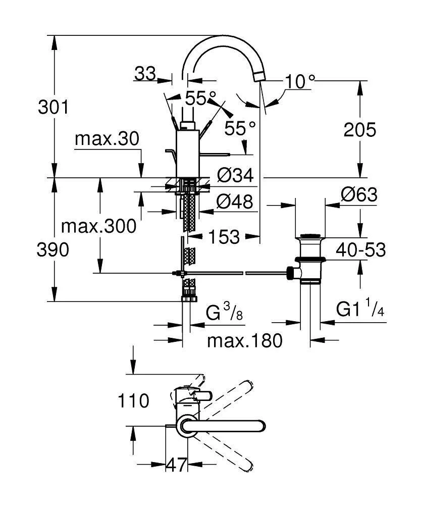 Высота излива, мм