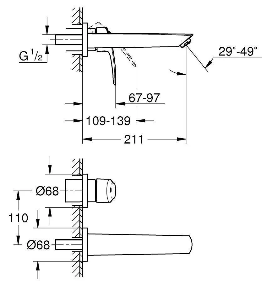 Смеситель для раковины GROHE Eurosmart на два отверстия, M-Size (29338003)