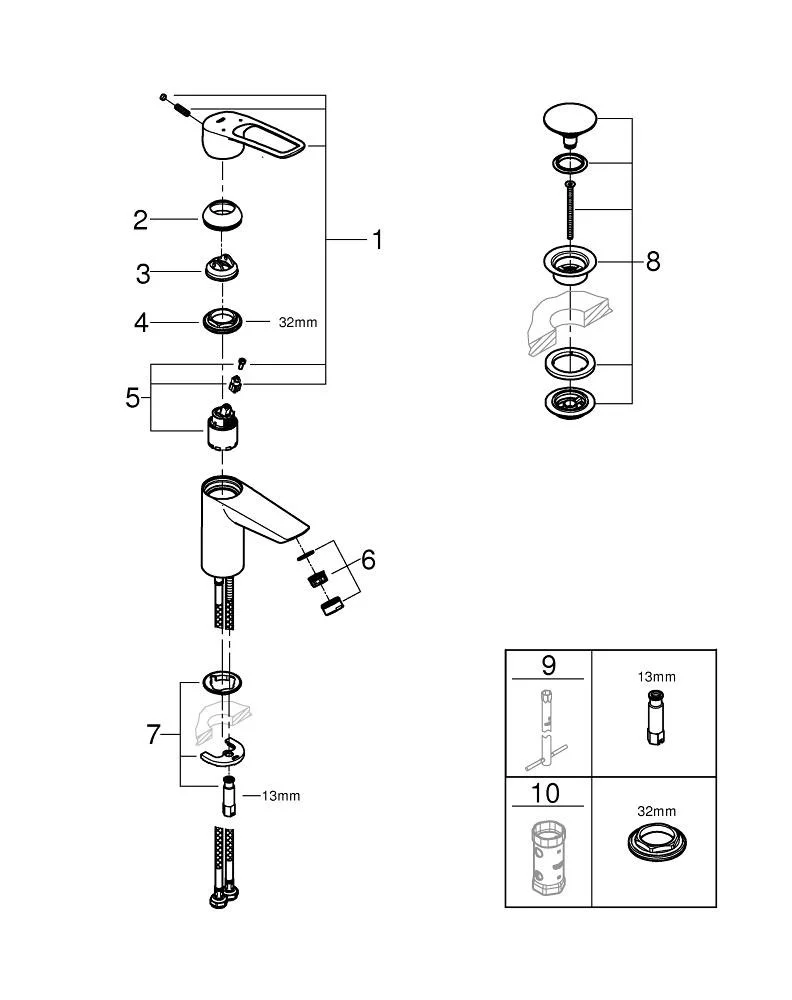 Купить Смесители для раковины производства GROHE (Германия), коллекция Eurosmart, код товара: 264034 можно выгодно в Сантемо.ру: