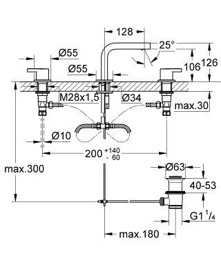 Смеситель для раковины GROHE Lineare на 3 отверстия с донным клапаном и низким изливом, хром (203040 20304000