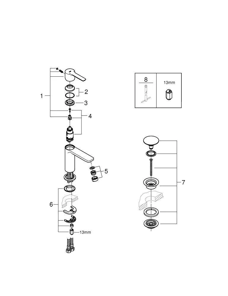 смеситель с гладким корпусом с нажимным донным клапаном 1 1/4"