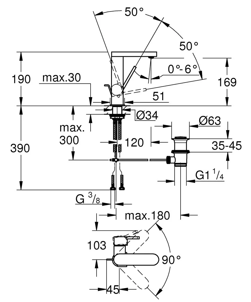 - поворотный излив с удобным возвратным механизмом, область поворота 90°
