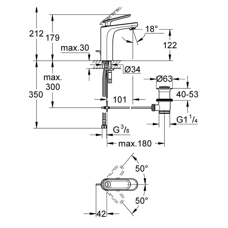 Смеситель для раковины GROHE Veris с донным клапаном и средним изливом, хром (23064000)