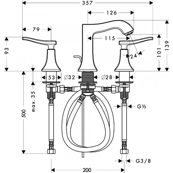 Смеситель для раковины hansgrohe Metris Classic на 3 отверстия и сливным гарнитуром, хром 31073000