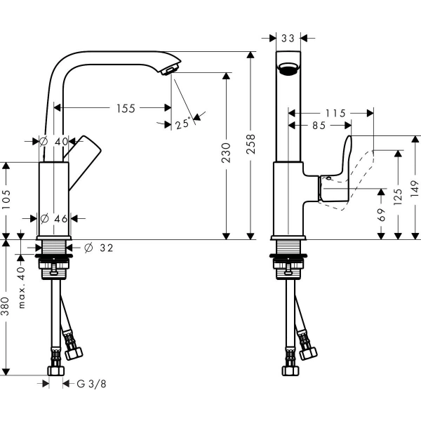 • угол поворота излива 120°