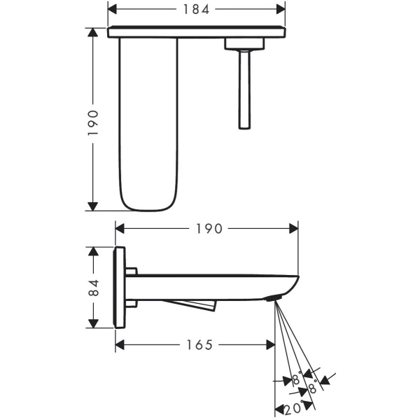 Смеситель для раковины hansgrohe PuraVida настенный, хром 15084000