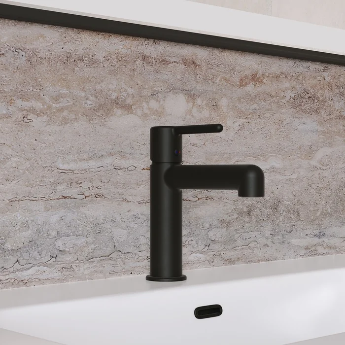 Стильный Смеситель для раковины, где удачно сочетает актуальный современный дизайн и популярный черный цвет. Тонкая удлиненная ручка добавляет смесителю изящества и комфорт в управлении. Расстояние между ручкой и изливом увеличено для большего удобства.