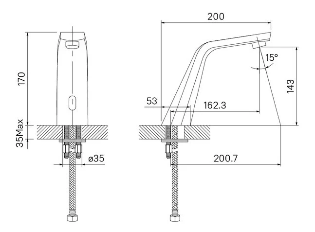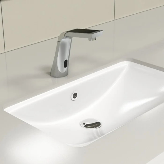 Смеситель для раковины, латунь, хром, сенсорное управление, силиконовый аэратор Neoperl. Регулировка температуры на блоке питания. Работает от 4-х пальчиковых батареек типа AA (не поставляются в комплекте). В комлекте: электрический блок питания, гибкая подводка 450мм, соединительный провод 500мм, крепёж. Упаковка: коробка, микрогофрокартон, индивид. мешок.