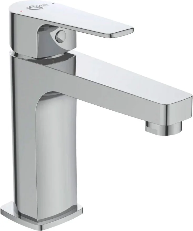 CERAFINE D Grande Однорукоятковый смеситель для умывальника, картридж 28 мм FirmaFlow с функцией HWTC (ограничение максимальной температуры горячей воды), гибкая подводка G3/8", система монтажа EASY-FIX (облегченный монтаж), аэратор Perlator, с ограничением потока 5 л/мин., металлическая рукоятка с индикаторами горячей / холодной воды, без донного клапана