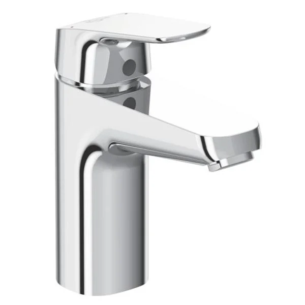 CERAFLEX Grande Однорукоятковый смеситель для умывальника, система монтажа EASY-FIX (облегченный монтаж), литой излив, длина излива 110 мм, аэратор Perlator с ограничением потока 5 л/мин., керамический картридж IS 40 мм, с функцией HWTC (ограничение максимальной температуры горячей воды), без функции CLICK, металлическая рукоятка с индикаторами горячей / холодной воды, гибкая подводка G3/8" (антибактериальные шланги PEX), шланги стандартной длины 400 мм, пластиковый донный клапан