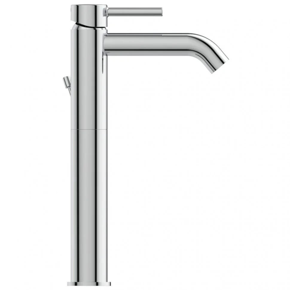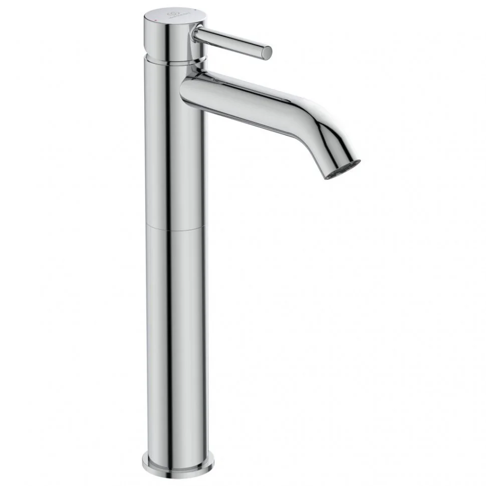 CERALINE Vessel Однорукоятковый смеситель для умывальника с удлиненным корпусом, картридж 35 мм Firmaflow® с функцией HWTC (ограничение максимальной температуры горячей воды), гибкая подводка G3/8" , монтаж IS-Fix - крепеж на центральной гайке M 33x1,5 с двумя блокирующими винтами (обеспечивает стабильную фиксацию смесителя), аэратор Cashe с ограничением потока 5 л/мин., металлическая рукоятка с индикаторами горячей / холодной воды, металлический донный клапан