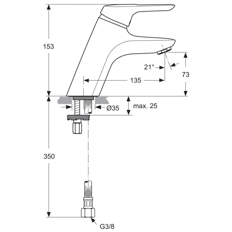 CERAMIX BLUE Однорукоятковый смеситель для умывальника под 1 отверстие, система монтажа TOP-FIX (быстрый монтаж сверху), гибкая подводка G3/8, картридж 40 мм IS с функцией CLICK (ограничение потока воды), с функцией HWTC (ограничение максимальной температуры горячей воды), литой корпус, без донного клапана, металлическая рукоятка с индикаторами горячей / холодной воды, аэратор CASCADE M24x1, технология BLUE (без никеля и свинца)