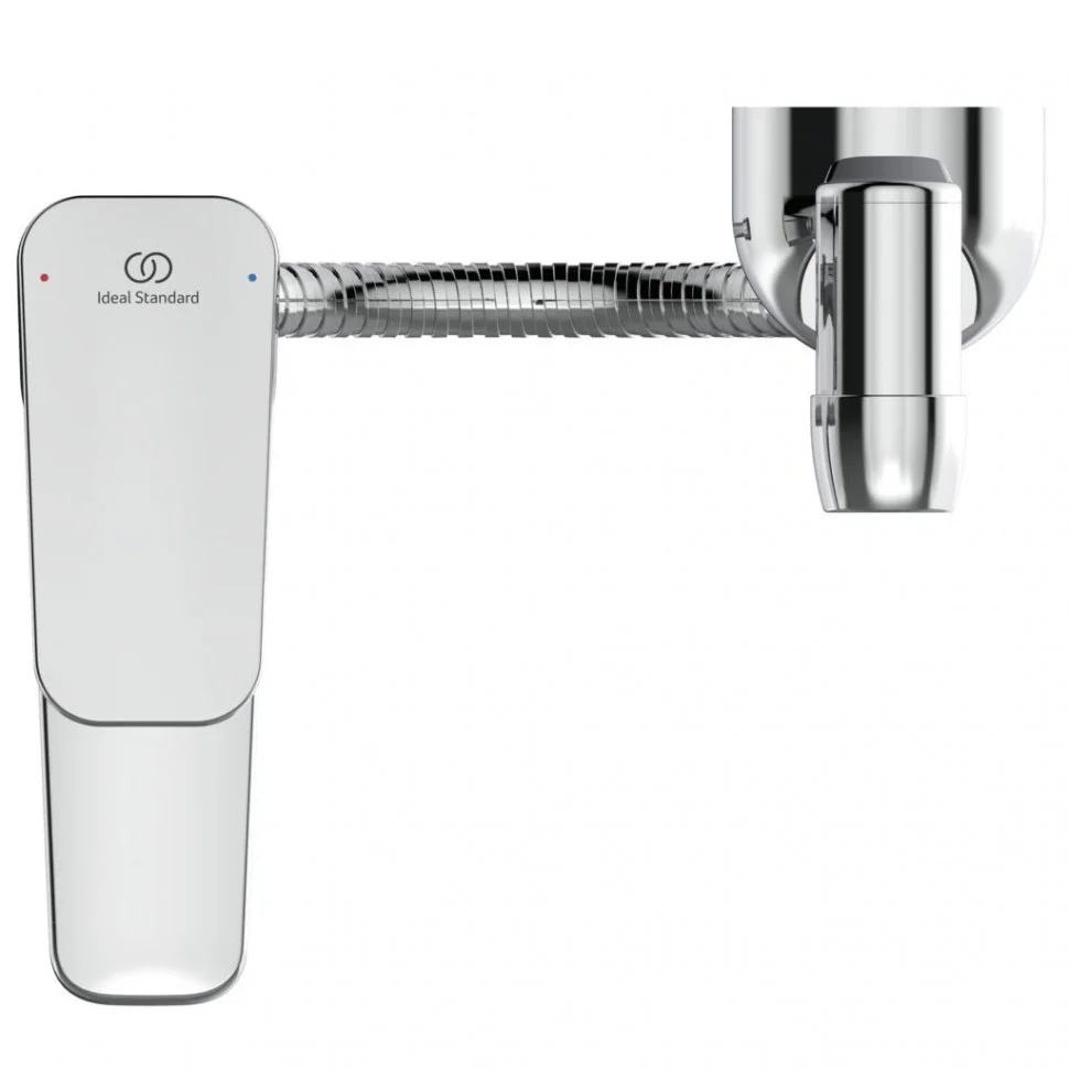 CERAPLAN Смеситель для раковины с гигиеническим душем, без донного клапана, система монтажа EASY-FIX (облегченный монтаж), гибкая подводка G3/8", картридж FirmaFlow 38 мм с функцией HWTC (ограничение максимальной температуры горячей воды), металлическая рукоятка с индикаторами горячей / холодной воды, аэратор Slim с ограничением потока 5 л/мин, с металлически шлангом и настенным держателем для лейки