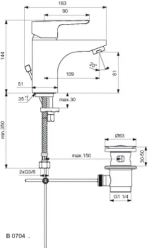 металлическая рукоятка с индикаторами горячей/холодной воды,