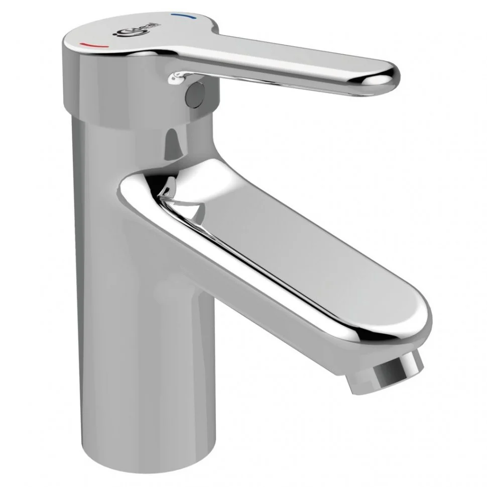 CERAPLUS 2.0 Смеситель для умывальника, технология Ni-free (без никеля), металлическая рукоятка с нестираемыми индикаторами горячей/холодной воды длиной 110 мм, без донного клапана, ламинарный регулятор потока (защита от попадания бактерий) (ключ в комплекте), гибкая подводка PEX, новый картридж 38 мм с функцией HWTC (ограничение максимальной температуры горячей воды), ограничение потока 8.4 л/мин, система монтажа EASY-FIX (облегченный монтаж), класс шумности 1