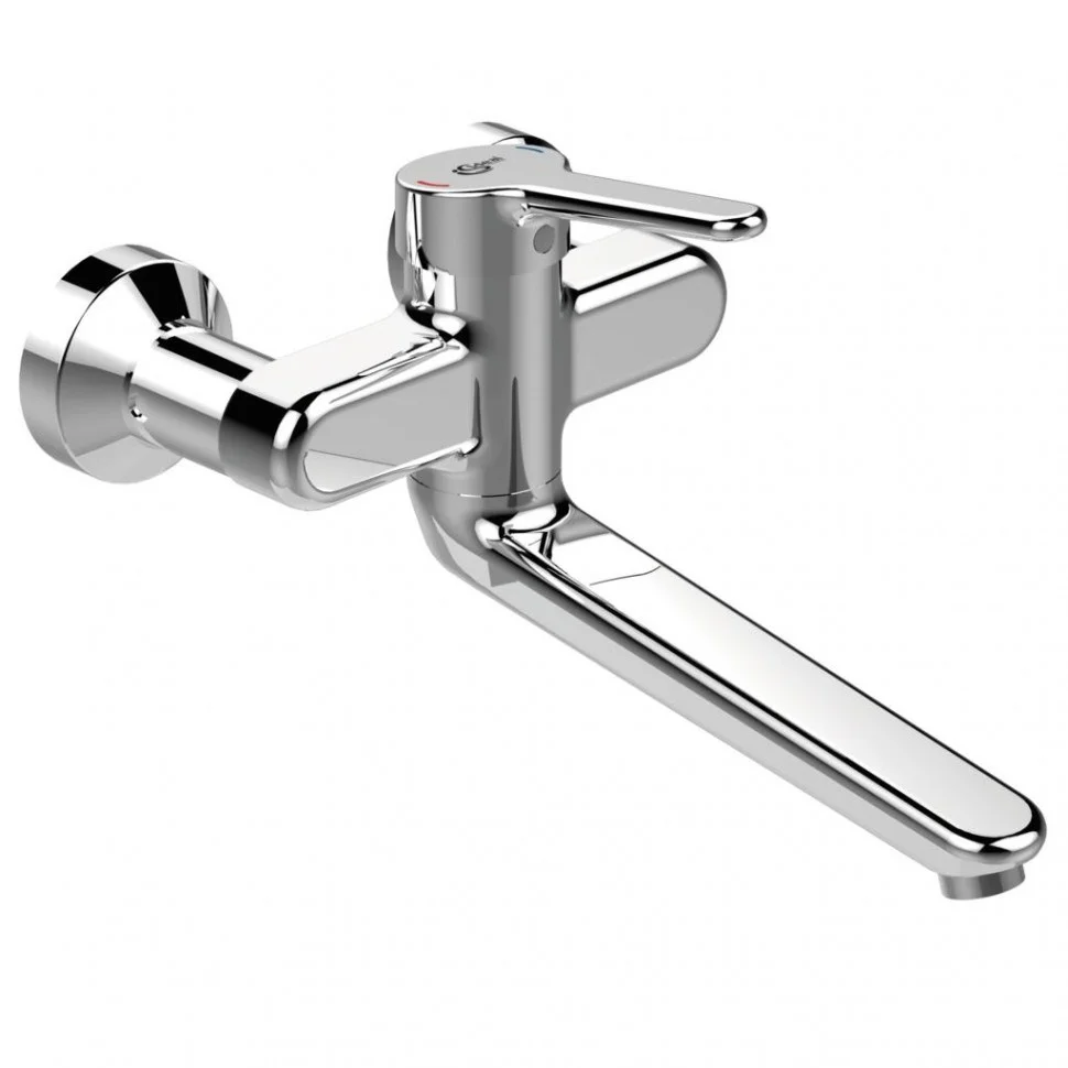 CERAPLUS 2.0 Настенный смеситель для умывальника, латунный корпус, технология Ni-free (без никеля), поворотный / фиксируемый излив, длина 200 мм, металлическая рукоятка с нестираемыми индикаторами горячей/холодной воды длиной 110 мм, ламинарный регулятор потока (защита от попадания бактерий) (ключ в комплекте), новый картридж 38 мм с функцией HWTC (ограничение температуры горячей воды), ограничение потока 5 л/мин., скрытые съемные эксцентрики с технологией Ni-free, класс шумности 1