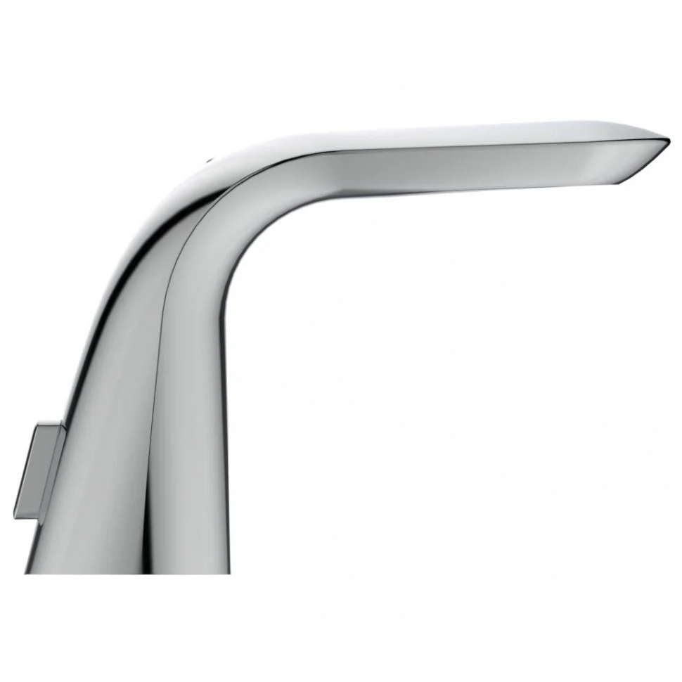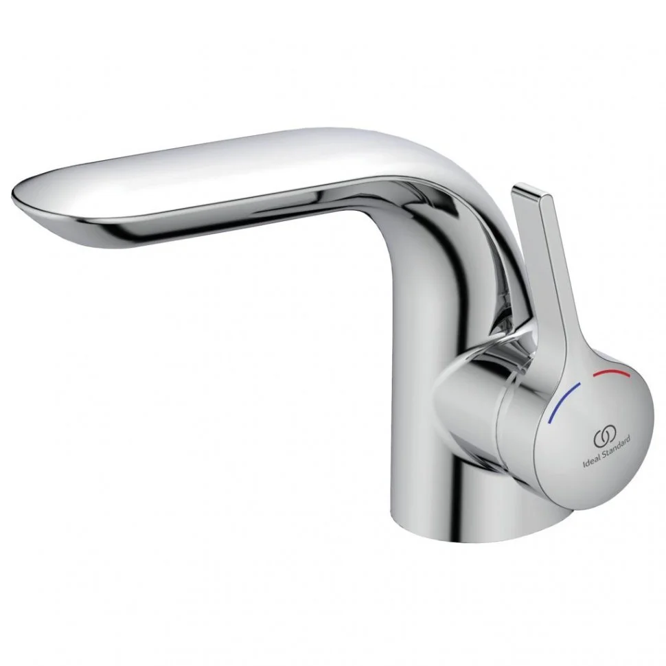 MELANGE Однорукоятковый смеситель для умывальника под 1 отверстие, система монтажа EASY-FIX (облегченный монтаж), жесткая подводка D10 M8X1, картридж 35 мм Kerox с ограничителем горячей воды, литой корпус с отверстием под стержень донного клапана, металлический донный клапан, металлическая рукоятка с индикаторами горячей / холодной воды, скрытый аэратор “Cache” M21,5x1