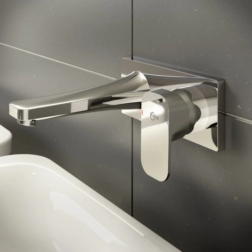 TONIC II Однорукоятковый смеситель для умывальника для встраивания, комплект №2 (внешняя часть), ограничитель горячей воды интегрирован в картридж, литой излив 180 мм, металлическая накладка, металлическая рукоятка с индикаторами горячей / холодной воды, регулируемый аэратор M24 – 5 л/мин. Для монтажа с A5948NU
