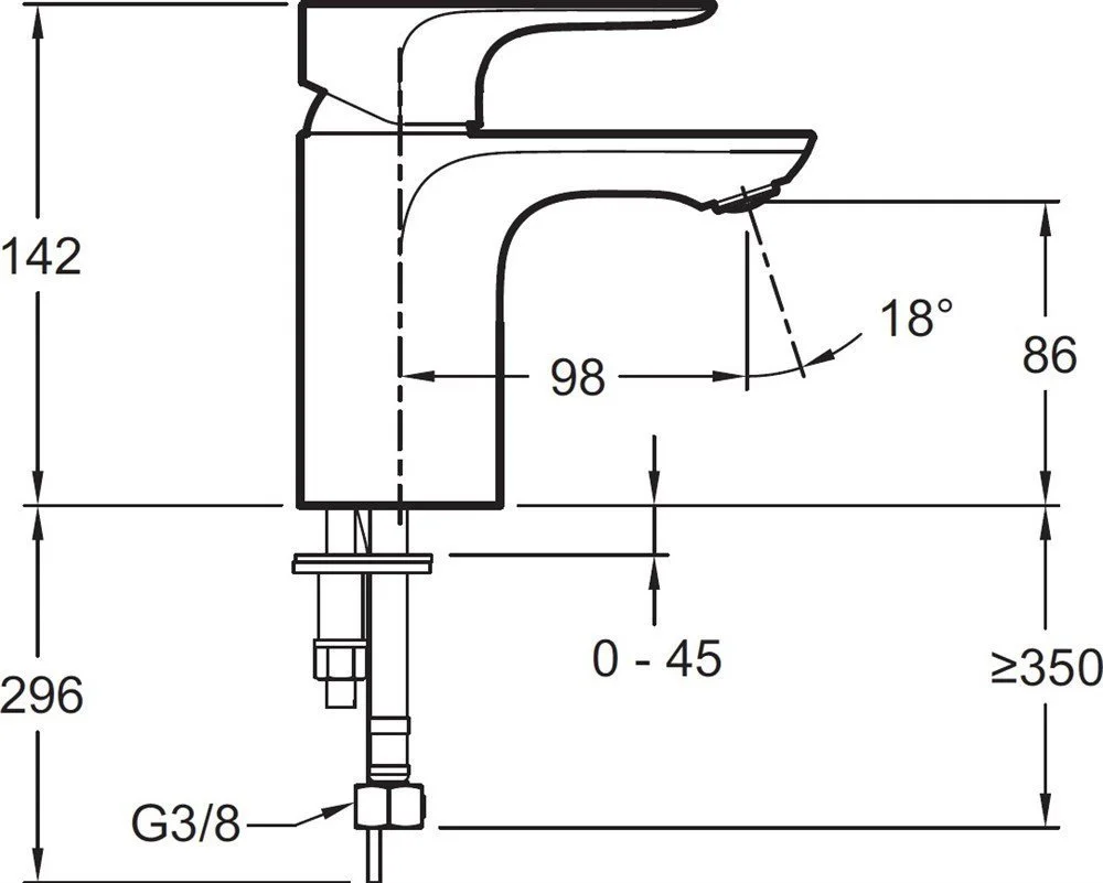 Расстояние между центром излива и центральной осью корпуса: 98 мм