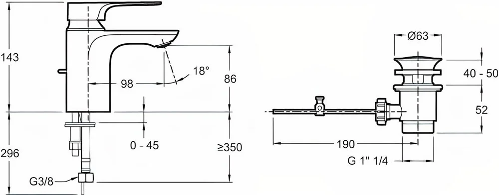 Смеситель для раковины Jacob Delafon Aleo+ E72313-CP с донным клапаном