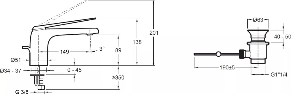 Смеситель для раковины Jacob Delafon Avid E97345-CP с донным клапаном