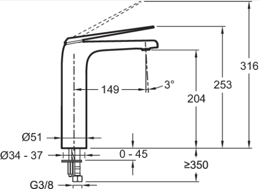 Высота излива: 253 мм