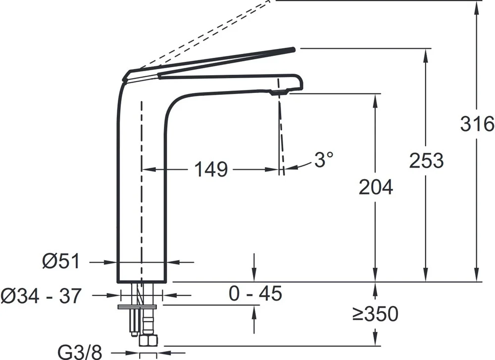 ВЫСОТА ПОД ИЗЛИВОМ : 316 мм