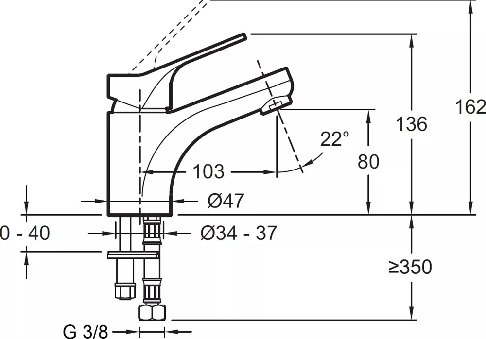 Расстояние между центром излива и центральной осью корпуса: 103 мм