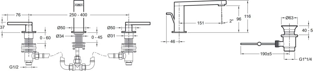 Межосевое расстояние: 250 - 400 mm