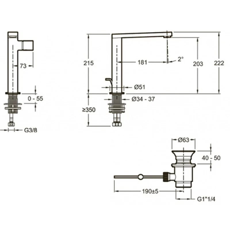 Длина излива: 181 мм