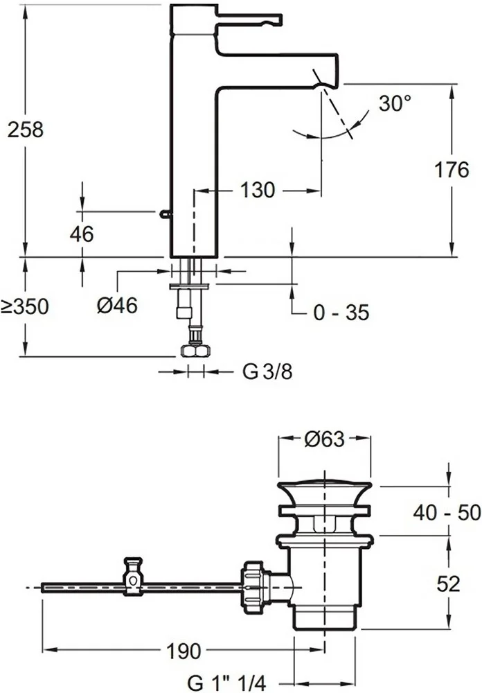 Высота излива, мм: 176