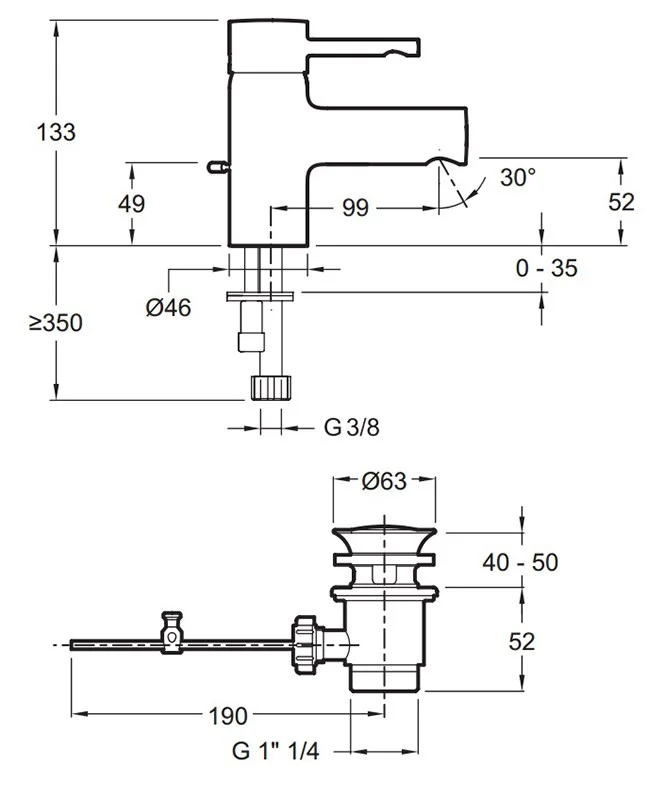 Высота под изливом: 133 мм