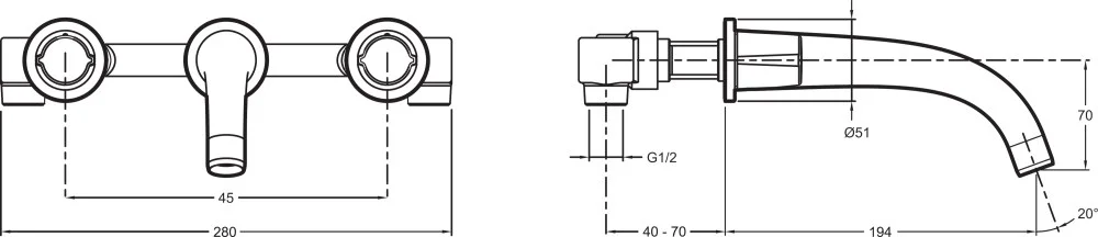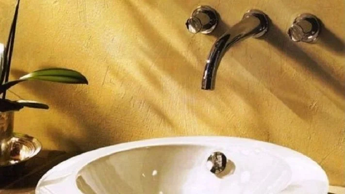Настенный смеситель на три отверстия с неподвижным изливом, гибкой подводкой, без донного клапана.