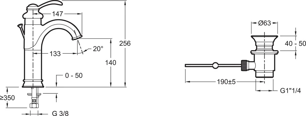 Смеситель Jacob Delafon Fairfax E72091 для раковины, «высокий» с гибкой подводкой и донным клапаном.