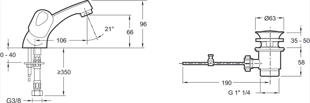 Длина излива: 106 мм