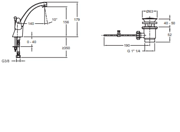 Ginko 170х90см, смеситель для умывальника, поворотный излив, с донным клапаном, арт. E72925-CP, Jacob Delafon