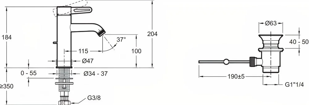 Донный клапан в комплекте.