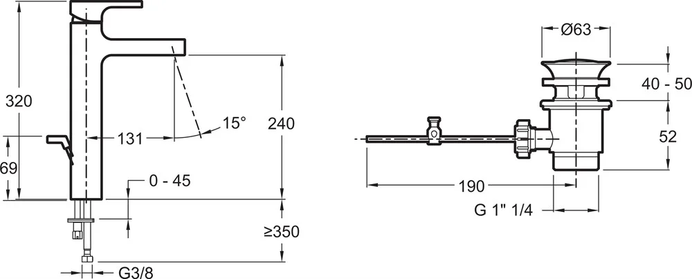 Смеситель для раковины Jacob Delafon Strayt E37329-CP с донным клапаном