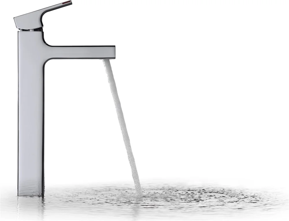 Высокий однорычажный смеситель для раковины без донного клапана.