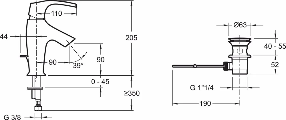 Смеситель на одно отверстие с гибкой подводкой.