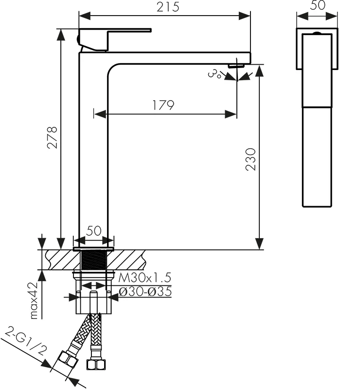 Высота излива, мм