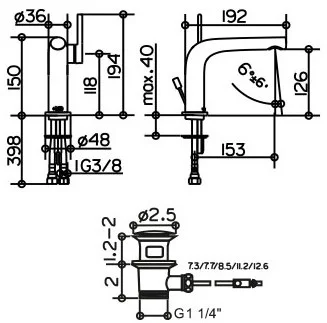 Смеситель для раковины Keuco Edition 400 51504 010002 12 см, с гарнитурой для слива и донным клапано 51504010002