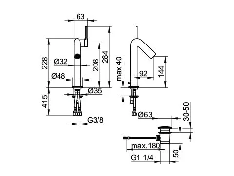 Смеситель для раковины Keuco Plan S 52902 010000 15 см, с гарнитурой для слива и донным клапаном 52902010000