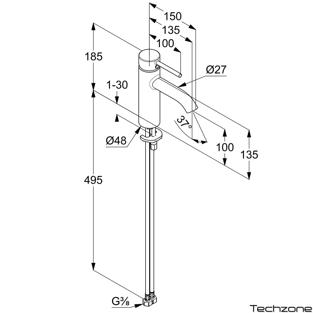 Высота излива, мм