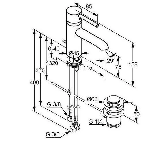 Смеситель Kludi Bozz 382970576 для раковины с донным клапаном